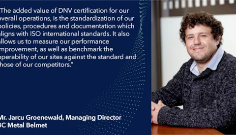 We were delighted to meet 3C Metal Belmet Managing Director, Mr. Jarcu Groenewald, in his company premises, to learn more about his experience with DNV, and what this collaboration has brought as an a...