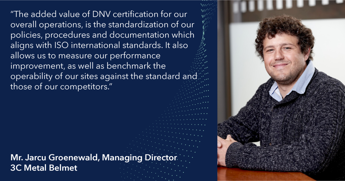 Hear more from companies like yours: check-out our latest interview with Mr. Jarcu Groenewald, Managing Director of 3C Metal Belmet on his companies’ certification journey by DNV!